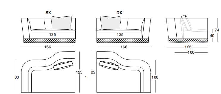 WELLES 166х125 см LONGHI Боковая секция дивана с двойной глубиной (SX/DX)