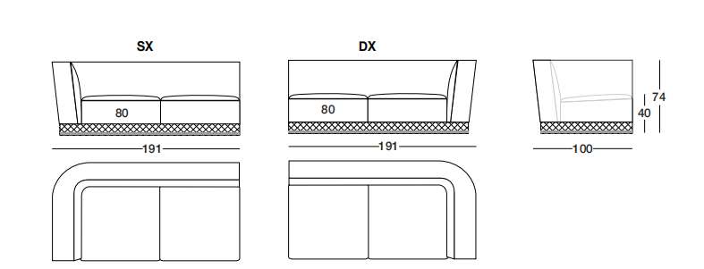 WELLES 191х100 см LONGHI Боковая секция дивана (SX/DX)