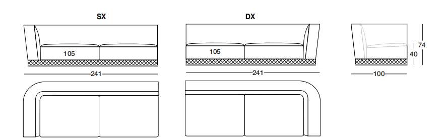 WELLES 241х100 см LONGHI Боковая секция дивана (SX/DX)