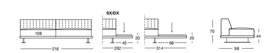 YOUNG 216х98 см LONGHI Центральная секция со столиком 45 см (SX/DX)
