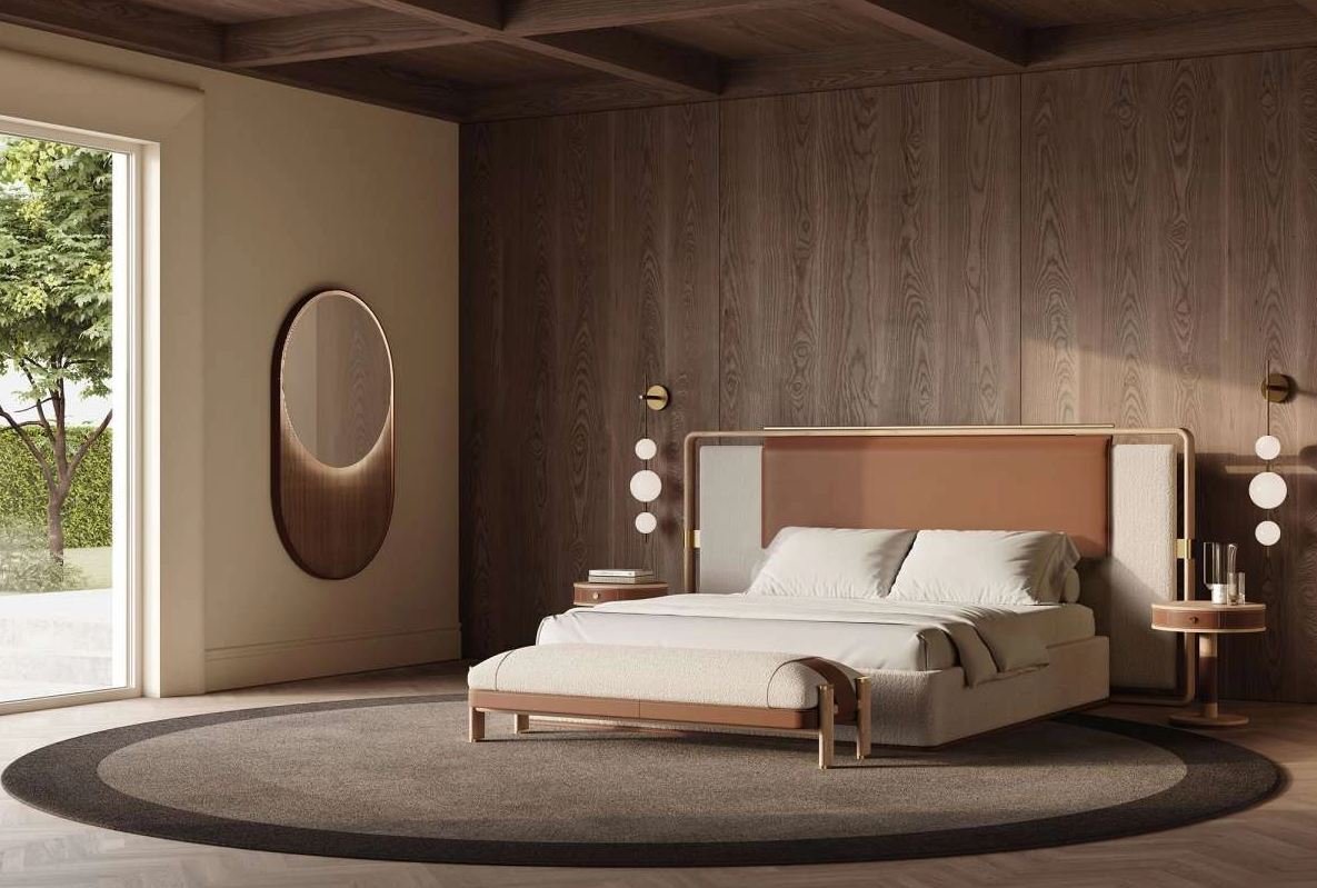 - Игру материалов. Сочетание дерева, металла и текстиля придаёт моделям глубину и характер, превращая кровать в арт‑объект.
